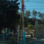 Ayuntamiento de Juan Santiago realiza jornada de instalación de lámparas para mejorar la iluminación del municipio.