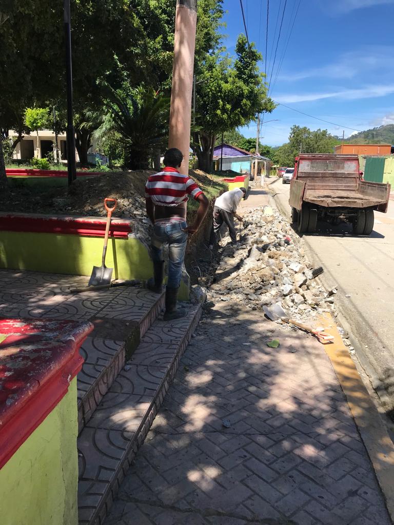 Esta vez nuestra brigada de construcción trabaja desde hace una semana en la reconstruccion del parque municipal, el mismo tenia algunas grietas que están siendo corregidas.
