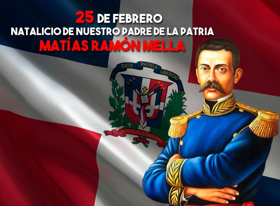 Matías Ramón Mella Castillo, nació el 25 de febrero de 1816 en Santiago de los Caballero, militar, político dominicano y uno de los padres de la Patria junto a Juan Pablo Duarte y Francisco del Rosario Sánchez. Como miembro del movimiento independentista, Mella encarnó la expresión militante y decidida, siendo conocido por haber disparado el trabucazo la noche del 27 de febrero de 1844 en la Puerta de la Misericordia, que dio comienzo de esta forma a la revuelta por la Independencia.
